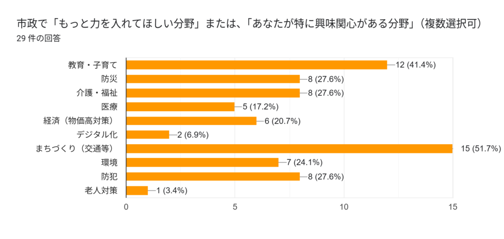 日頃、駅での街頭活動やポスティングなどでお配りしたアンケートはがきの回答をまとめました。ぜひご覧いただき、みなさまのご意見を引き続きいただけますと幸いです。